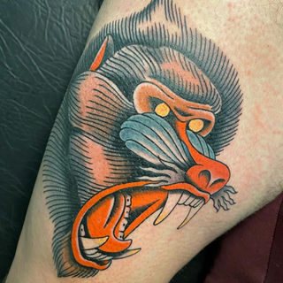 Занимается как диджитал разработкой эскиза, так и отрисовкой на бумаге, как принято в традиционной татуировке.